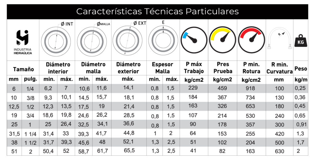 La manguera está realizada en conformidad con las normas DIN EN853 1SN y SAE J517 100R1AT.